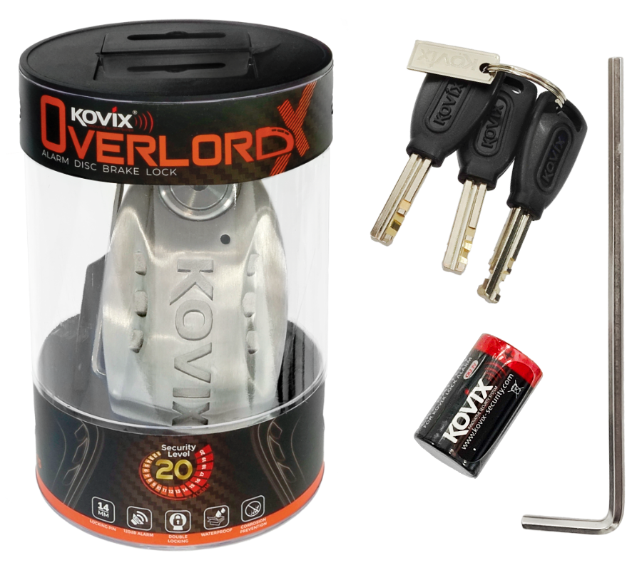 Wykonana w całości ze stali nierdzewnej blokada tarczy hamulcowej KNX15 z wbudowanych alarmem o natężeniu dźwięku 120 dB z możliwością ustawiania opcji syreny ON/OFF. Zamek ze stali nierdzewnej i wodoodporne podzespoły elektryczne gwarantują ochronę przed korozją i niezawodność w każdych warunkach atmosferycznych. Blokada wyposażona jest w długo pracującą i przyjazną dla środowiska litową baterię. Zabezpieczenie blokuje koło bolcem o średnicy 14 mm, przez co uniemożliwia jazdę i ruch motocykla lub skutera. Blokady tarczy hamulcowej marki KOVIX wykonane są z wysokiej jakości stali, dzięki czemu są odporne na korozję i uszkodzenia. Powleczone powłoką antykorozyjną, która chroni je przed zarysowaniami.